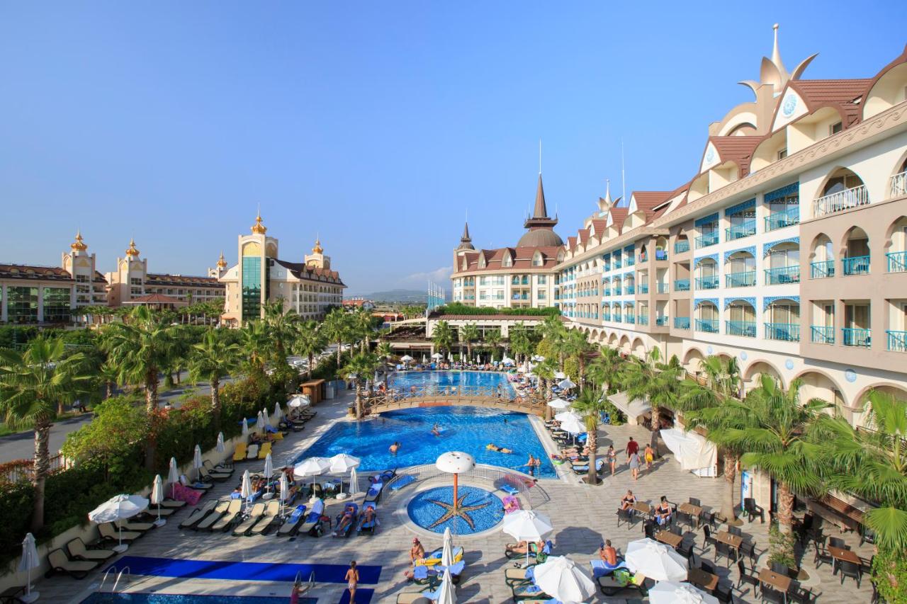 Hotelul Side Crown Palace este un complex modern și luxos situat în inima turistică a Side-ului, în Turcia. La doar câteva minute de mers pe jos de la plaja Mediteraneei, hotelul oferă oaspeților săi o experiență de vacanță de neuitat. Hotelul oferă camere spațioase și elegante, decorate într-un stil modern și dotate cu TV cu ecran plat, minibar, aer condiționat și baie privată cu cadă sau duș. Hotelul dispune de o gamă largă de facilități de cinci stele, precum două piscine exterioare impresionante, tobogane de apă, precum și multe opțiuni de restaurante, baruri și lounge-uri. Oaspeții se pot bucura de o varietate de opțiuni culinare, de la mâncăruri tradiționale turcești până la preparate internaționale și specialități din bucătăria italiană. Oaspeții se pot bucura și de o gamă largă de activități la hotel, cum ar fi jocuri de apă, tenis de masă Hotelul organizează, de asemenea, seri tematice și spectacole live pentru a completa experiența de vacanță. Side Crown Palace este o alegere excelentă pentru o vacanță de lux și relaxare în Turcia.